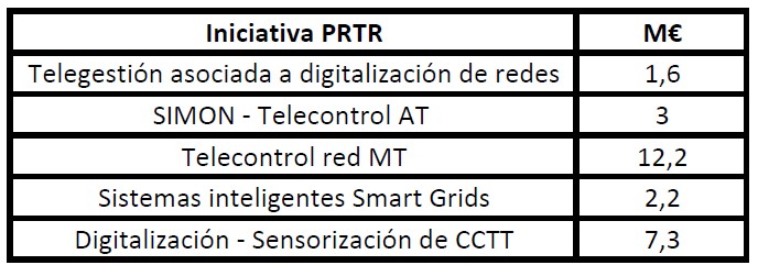 Donada la importància de les xarxes elèctriques en la transició energètica nacional definida pel PNIEC, dins del Pla de Recuperació, Transformació i Resiliència presentat davant la Comissió Europea, s'ha recollit en el seu Component 8: ‘Infraestructures elèctriques, promoció de xarxes intel·ligents i desplegament de la flexibilitat i l'emmagatzematge’ el suport a la inversió per a aconseguir aquesta necessària transformació de les xarxes.